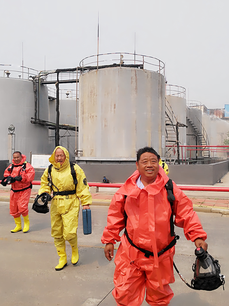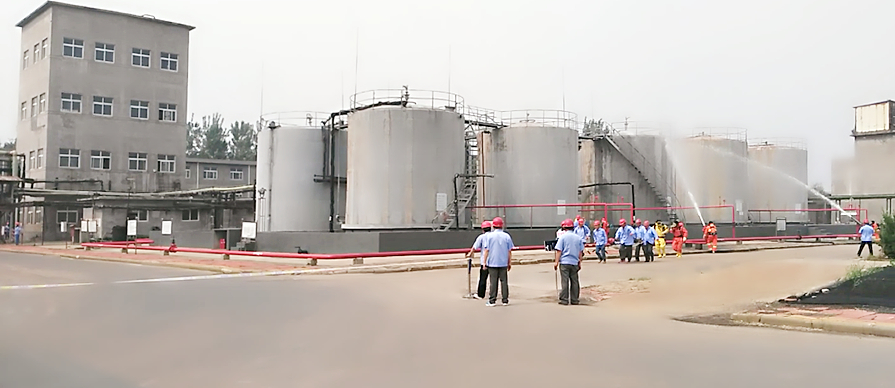 硝基苯車(chē)間巡檢員在例行巡檢時(shí)發(fā)現(xiàn)儲(chǔ)罐區(qū)苯三號(hào)罐閥門(mén)泄露,用對(duì)講機(jī)立即報(bào)告車(chē)間安全值班員。車(chē)間班組維修人員當(dāng)即到現(xiàn)場(chǎng)搶修,由于閥門(mén)泄露情勢(shì)比較嚴(yán)重,黃色的苯霧蔓延,隨時(shí)會(huì)發(fā)生著火危險(xiǎn)。帶隊(duì)班長(zhǎng)立即請(qǐng)示車(chē)間搶險(xiǎn)防爆隊(duì)支援搶修,在防爆搶修過(guò)程中,事態(tài)嚴(yán)重,一人暈倒。車(chē)間搶險(xiǎn)隊(duì)長(zhǎng)立即上報(bào)虹橋公司值班調(diào)度。值班調(diào)度迅泄漏應(yīng)急救援預(yù)案,各應(yīng)急救援小組人員迅速奔赴現(xiàn)場(chǎng)。虹橋公司搶險(xiǎn)防暴隊(duì)人員立即開(kāi)啟四個(gè)應(yīng)急消防水泵,伴隨著警報(bào)聲,白色的水龍從四個(gè)方向“箭”似噴射向苯儲(chǔ)罐和泄露罐閥門(mén)著火點(diǎn),苯霧迅即被稀釋?zhuān)瑩屝奕藛T成功對(duì)泄漏閥門(mén)進(jìn)行了堵漏;同時(shí)保衛(wèi)警戒組拉起了隔離帶,勸導(dǎo)、疏散閑雜人員;醫(yī)療救護(hù)組抬出受傷人員至安全區(qū)迅速進(jìn)行初期救護(hù)……整個(gè)救援搶險(xiǎn)緊張有序地進(jìn)行演練完成。